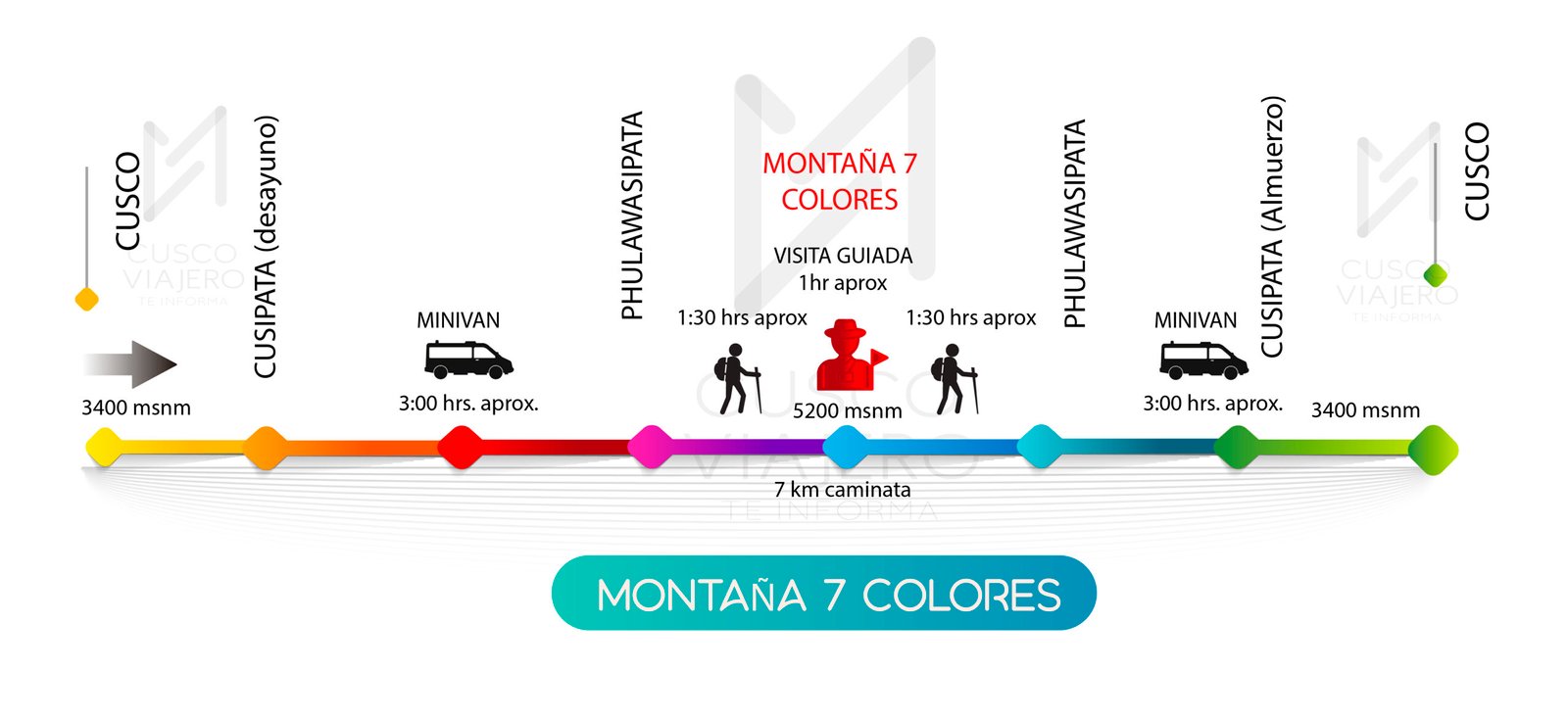 • 09:30 am Inicio de la caminata de 1 hora y 30 minutos hasta la montaña de 7 colores